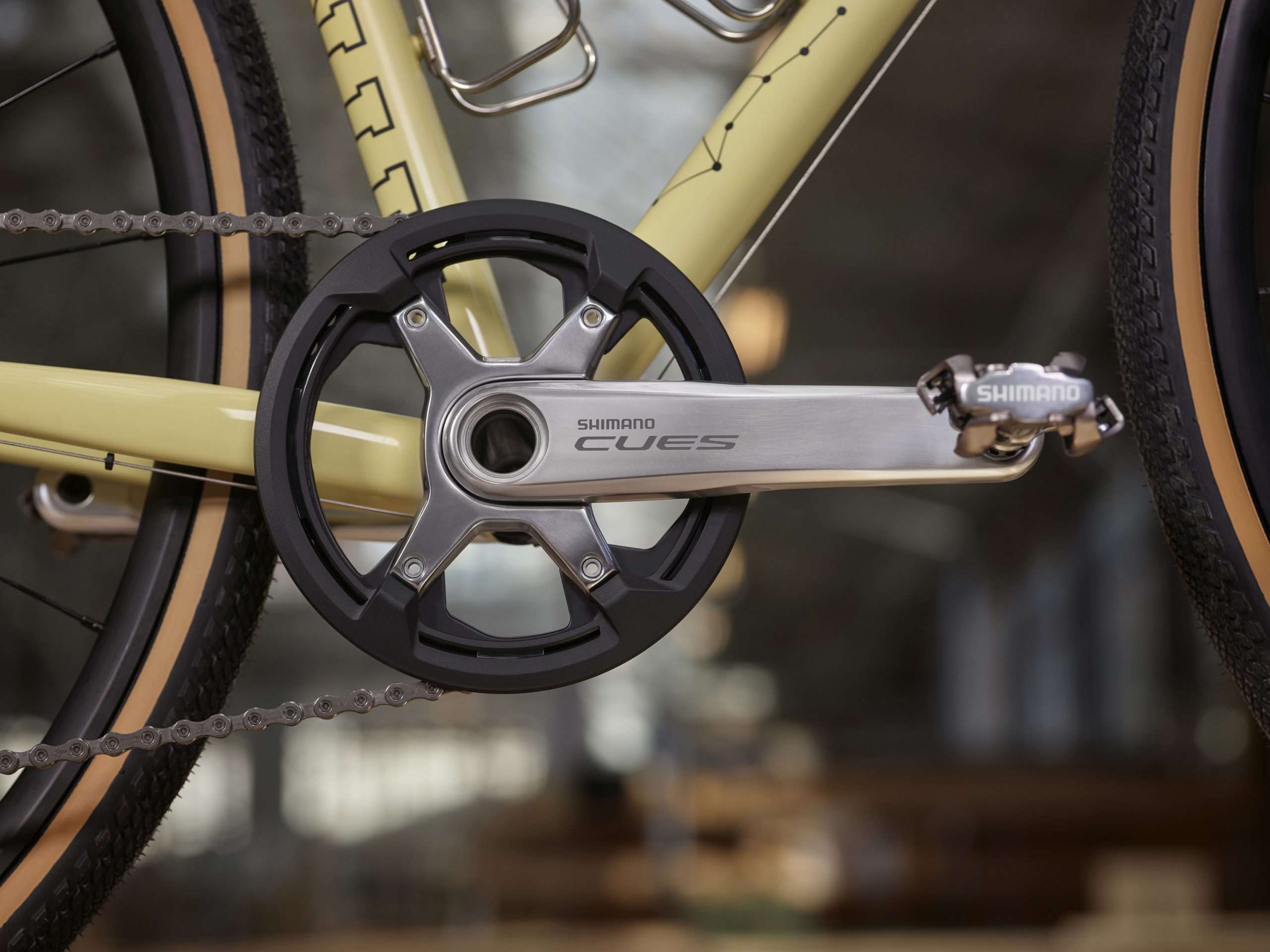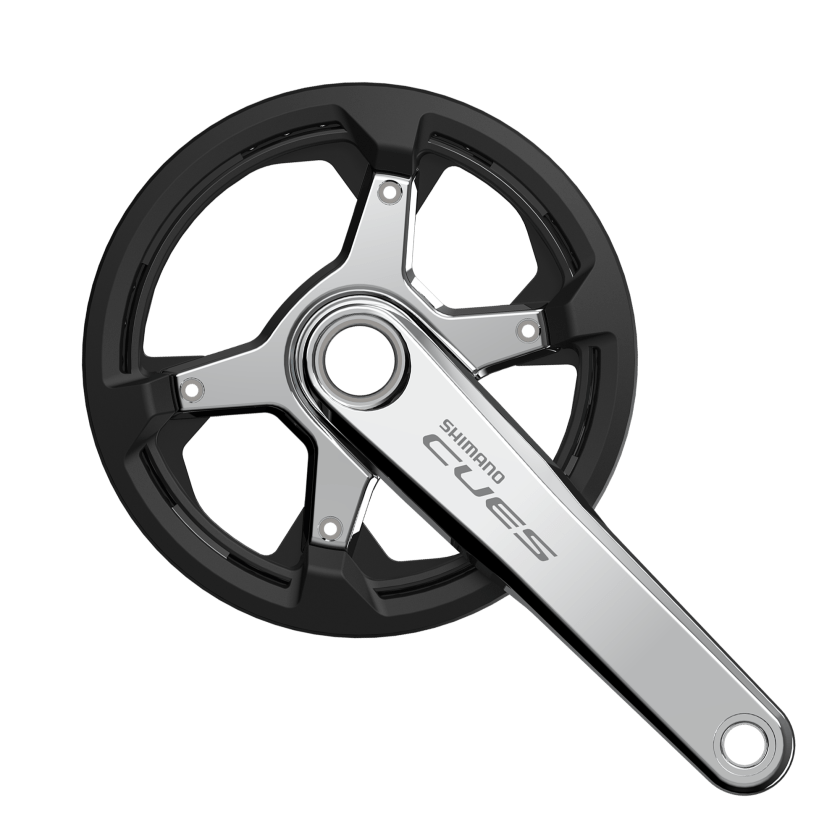 Los ciclistas también pueden utilizar los componentes en aluminio pulido de SHIMANO CUES para mejorar sus configuraciones de manillar plano combinando componentes de toda la gama CUES. En este caso, los ciclistas combinarían la palanca de cambios CUES SL-U6000-10R existente con las manetas de freno BL-MT401 o BL-T4000 y las pinzas de freno BR-MT410 y BR-T4000. A continuación, combinarían estos componentes con la biela, el cassette y el desviador trasero CUES plateados pulidos (ver arriba) para lograr una estética única para montar con manillar plano.
