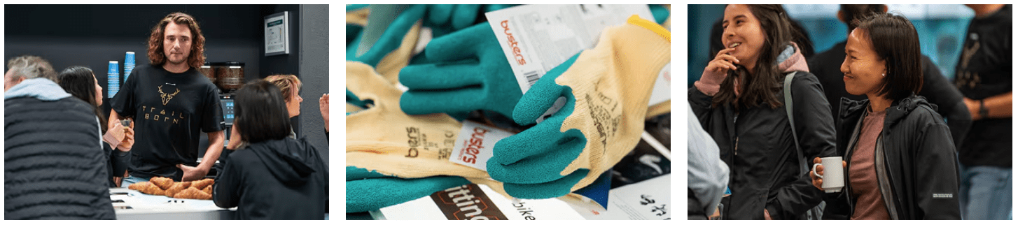 Estamos hablando de ejecutivos y de recursos humanos, equipos legales, TI, dos influencers de Shimano, personal de marketing (como yo), ventas y más allá, algunos desafiando las leyes locales sobre trabajo infantil para llevar a sus hijos a realizar un buen trabajo duro a la antigua usanza.