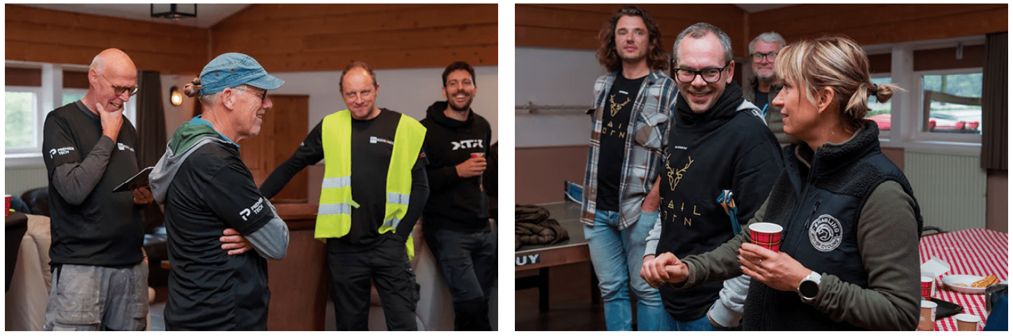 Soy el último en entrar a la sala de reuniones y encontrarme con el equipo que se unirá a más de cien empleados de Shimano en toda Europa en los senderos hoy para ayudar a las comunidades locales con sus tareas de mantenimiento.